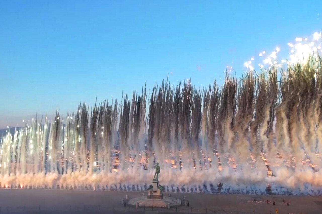 On November 19, pyrotechnics specialist and celebrated contemporary artist Cai Guo Qiang launched 50,000 fireworks portraying flowers at the Piazzale Michelangelo in Florence, Italy. The Chinese artist drew inspiration from Renaissance artist Sandro Botticelli’s Primavera tempera painting. Colorful smoke rose from the historic establishment, covering nearly 24 meters of sky. The expansive piece entitled “City of Flowers in the Sky” is comprised of seven acts: “Thunder,” “God of the West Wind and Goddess of the Land”, “The birth of Flora”, “Venus”, “Three Graces”, “Spiritual Garden” and “Red Lily.”