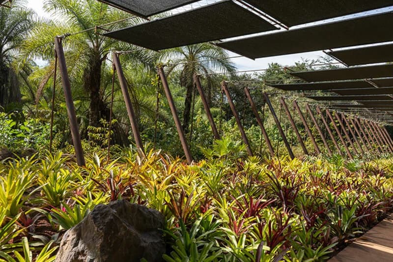 Kusama’s installations typically come with a long queue, so architects Fernando Maculan and Maria Paz sought to bring an equal sense of fascination on the exterior of the gallery by designing an elegant waiting area that features black rectangular shades atop a garden of over 4,000 bromeliads, made to reflect Brazil’s tropical rainforests. “The importance of Yayoi Kusama’s work and its undeniable appeal to large audiences drove the project to incorporate a spacious waiting and preparation area,” said the architects in a statement.